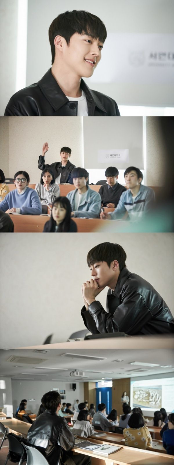‘본 어게인’에서 풋풋한 의대생으로 변신한 장기용의 수업 중 모습을 포착했다.