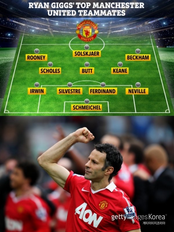 잉글랜드 프리미어리그(EPL) 맨체스터 유나이티드(이하 맨유) 역사상 가장 많은 경기(963회)에 출전한 라이언 긱스가 함께 뛴 동료들 중 베스트 11을 구성했다.