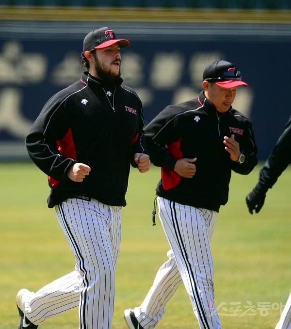 프로야구 개막이 잠정 연기된 가운데 LG 트윈스가 8일 서울 잠실야구장에서 훈련을 가졌다. 자가격리에서 해제되어 팀 훈련에 참가한 라모스가 러닝을 하고 있다.
