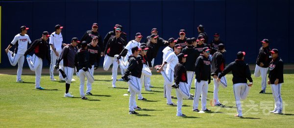 프로야구 개막이 잠정 연기된 가운데 LG 트윈스가 8일 서울 잠실야구장에서 훈련을 가졌다.