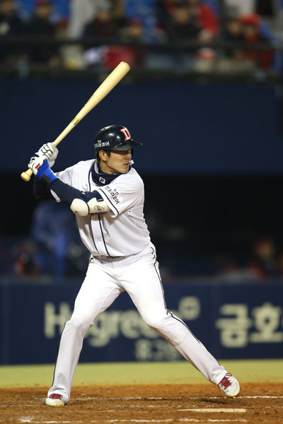 호주 질롱 1차 스프링캠프 때부터 타격자세에 변화를 줬다. 배트를 잡는 위치 등 미세한 부분이 아닌 스탠스 자체를 바꿨다. 지난해까진 뒤쪽 발을 홈플레이트에 가깝게 두는(우타자 기준) 오픈스탠스를 취했지만, 올해부터는 두 다리를 나란히 하고 타석에 서는 스퀘어스탠스를 취한다. 국군체육부대(상무) 시절(2006~2007년)부터 2019 시즌까지 줄곧 유지했던 자세를 바꾼 것은 분명 큰 변화다. 김재호는 “공을 더 잘 보기 위한 선택”이라고 했다.