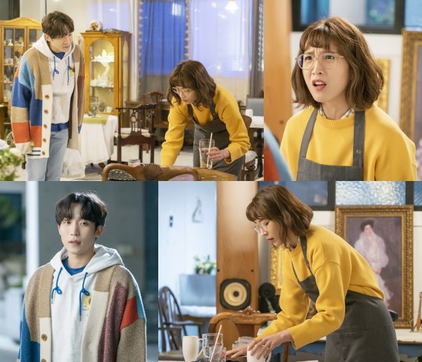 공개된 사진에는 당황한 송다희의 모습이 담겨있다. 카페에 찾아온 윤재석을 보고 당혹스런 표정을 감추지 못하고 있는 것. 또한 장난치는 그를 애써 무시, 카페 정리에 몰두 중인 모습이 담겨 보는 이들의 웃음을 자아낸다. 결국 이날 송다희는 계속되는 윤재석의 장난에 폭발, 평소 순한 모습은 잠시 넣어두고 “이제 속이 시원해요?!”라며 버럭 하는 모습까지 보인다.