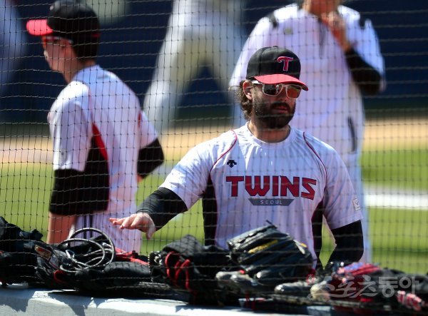 프로야구 개막이 잠정 연기된 가운데 LG 트윈스가 9일 서울 잠실야구장에서 훈련을 가졌다. 자가격리에서 해제된 켈리가 팀 훔련에 참가하고 있다.