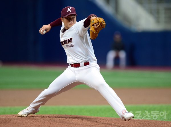 키움 홈팀 최원태가 힘차게 볼을 던지고 있다.