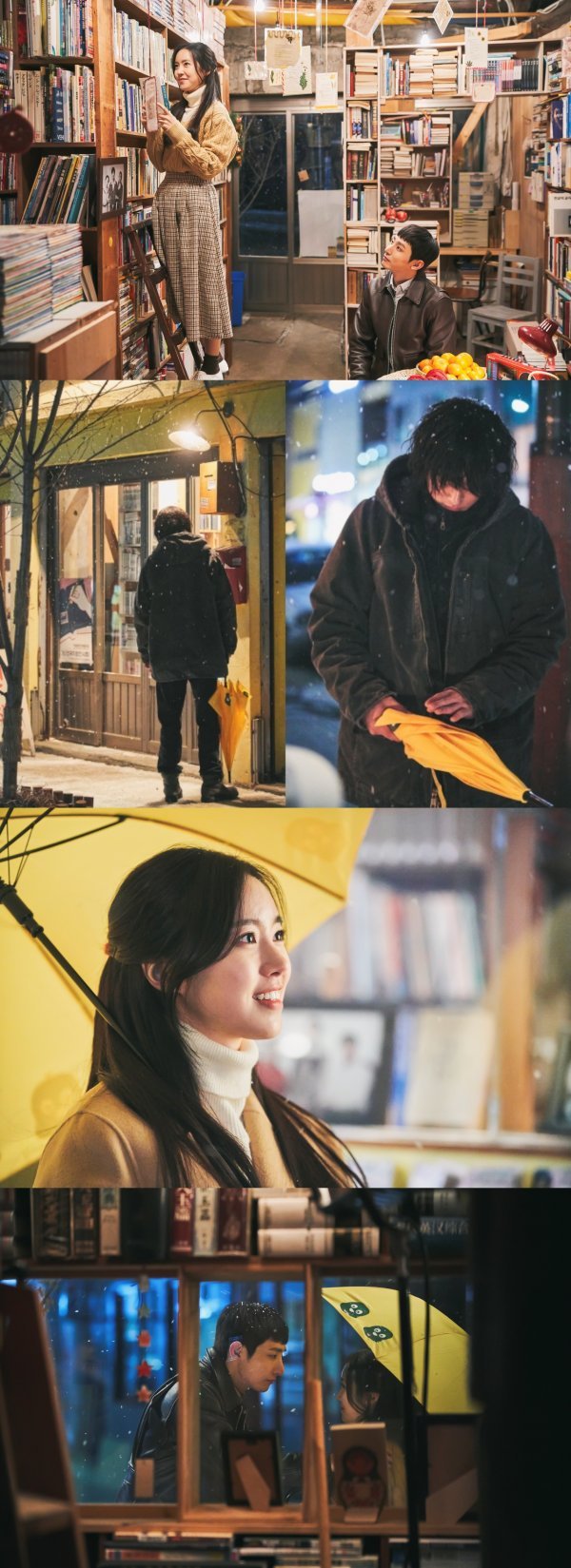 80년대 아날로그 감성이 흐르는 사진 속 헌책방 ‘오래된 미래’에서 다정한 한 때를 보내고 있는 정하은(진세연 분)과 그를 향한 순애보를 간직한 형사 차형빈(이수혁 분)의 모습이 담긴 것.