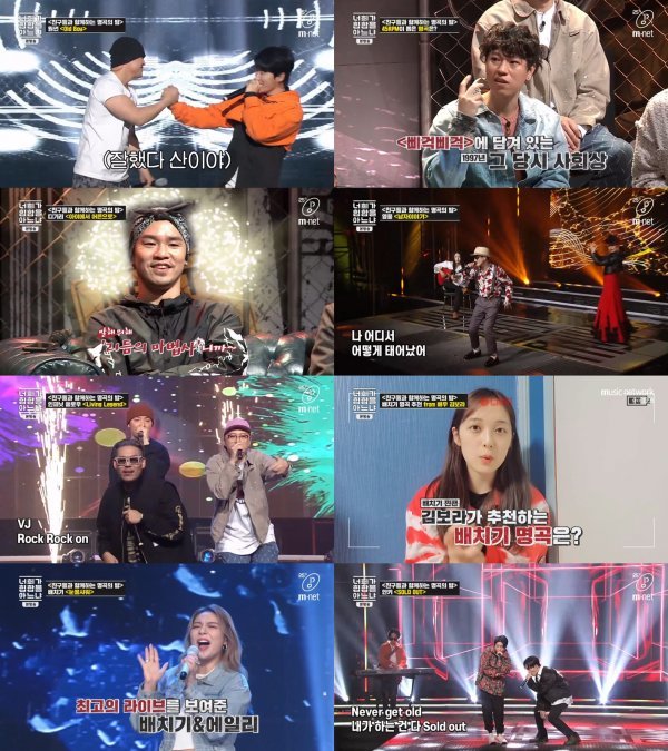 ‘친구와 함께하는 명곡의 밤’으로 꾸며진 Mnet ‘너희가 힙합을 아느냐’(이하 ’너힙아‘) 10일 방송에서는 아재 래퍼들의 명곡 무대는 물론 국내 힙합 명곡 이야기 등으로 금요일 밤을 뜨겁게 달궜다.