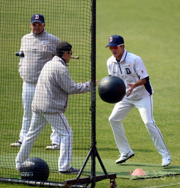프로야구 개막이 잠정 연기된 가운데 두산 베어스가 12일 서울 잠실야구장에서 훈련을 가졌다.