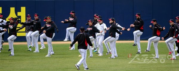 프로야구 개막이 잠정 연기된 가운데 LG 트윈스가 12일 서울 잠실야구장에서 훈련을 가졌다.