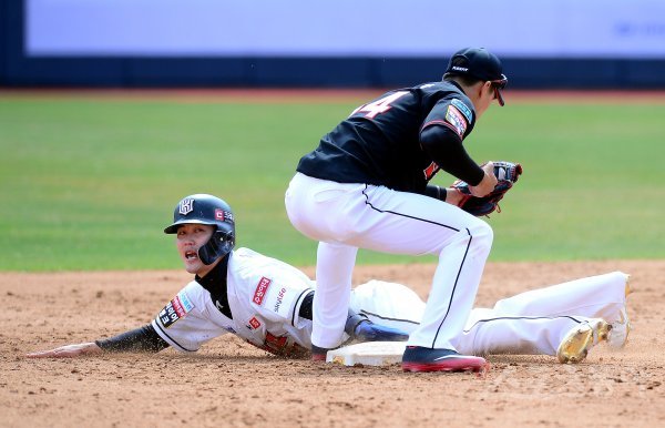 4회말 1사 1루에서 kt 빅팀 심우준 타석 때 1루 주자 배정대가 2루 도루에 성공하고 있다.
