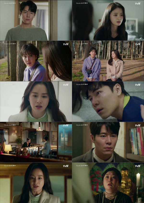 차유리는 진료를 받기 위해 병원에 가려는 엄마 전은숙(김미경 분)과 버스 정류장에서 우연히 만나게 됐다. 전은숙은 차유리와 나란히 버스를 타고 있었음에도, 차유리의 사고 장소였던 횡단보도를 편히 바라보지 못했다. 이를 알아챈 차유리가 손을 꼭 잡아주자 전은숙은 “괜찮았는데 횡단보도만 보면 심장이 벌렁벌렁했다. 일부러 기억하려고 한 건 아닌데 몸이 기억했나 보다”라고 말했고, 차유리는 곧 다시 떠나야 하는 자신을 꿈에도 모르는 전은숙을 애달프게 바라봤다. 병원에 도착한 차유리는 조강화가 수술에 참관했다가 뛰쳐나간 소식을 듣게 됐다. 차유리는 귀신 시절, 조강화가 홀로 숨어 괴로움을 삼키던 장소로 향했고 예상대로 조강화는 비상계단에서 고통스러워하고 있었다. 차유리의 등장에 놀라던 조강화는 이내 그 품속에서 오열했다. 조강화는 “왜 나만 두고 갔냐. 네가 살았어야지”라며 원망과 죄책감이 뒤섞인 감정을 토해냈다. 차유리는 그저 자책하지 말라고 조강화를 달래주며 슬픔을 삼켰다.