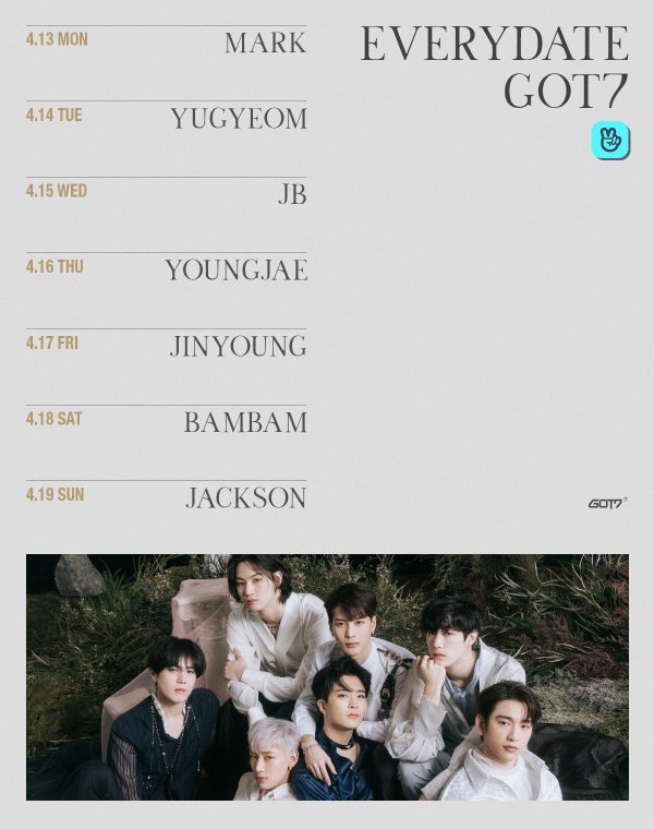 GOT7은 새 앨범 발매를 기다리는 팬들을 위해 깜짝 선물 \'EveryDATE GOT7\'(에브리데이트 갓세븐)을 준비했다. \'EveryDATE GOT7\'은 컴백을 일주일 앞둔 일곱 멤버가 차례로 네이버 V LIVE를 통해 매일매일 팬들을 찾아가는 것. 13일 마크를 시작으로 유겸, JB, 영재, 진영, 뱀뱀, 잭슨이 차례로 달콤한 매력을 선사할 예정이다.