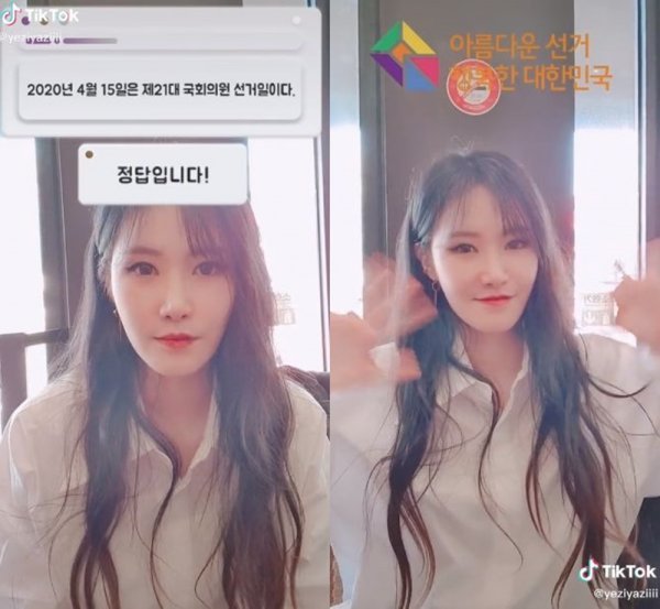 14일 예지는 자신의 틱톡 채널을 통해 오는 15일 열리는 제21대 국회의원선거 독려 영상을 공개했다.