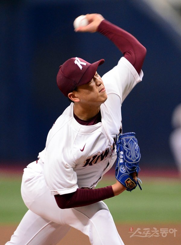 1회초 선발 등판한 홈팀 이승호가 역투하고 있다.