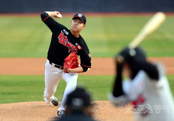 kt 빅팀 소형준이 힘차게 볼을 던지고 있다.