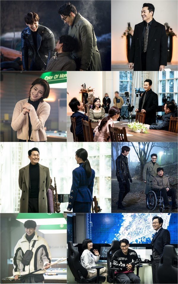그런 가운데 공개된 비하인드 사진은 숨 막히는 긴장감을 자아냈던 극 중 모습과 달리 화기애애하다. 최진혁, 박성웅, 정혜인, 한지완 등 현장에 모인 배우들의 얼굴엔 미소가 가득하다. 먼저, 강기범이 황득구에게 치명적인 일격을 가했던 6회 엔딩 비하인드 컷은 살벌했던 신의 분위기와는 확연하게 다른 온도차로 눈길을 끈다. 함께 호흡을 맞춘 최진혁, 장인섭, 박정학 배우의 호탕한 웃음은 보는 이들까지 기분 좋게 만든다. 특히 카리스마와 부드러움을 오가는 최진혁의 다채로운 매력이 설렘을 유발한다.