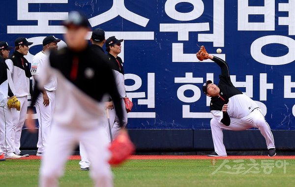 19일 수원 kt위즈파크에서 kt 위즈가 훈련을 가졌다. kt 류희운이 투수 앞 땅볼 수비 훈련을 하고 있다.