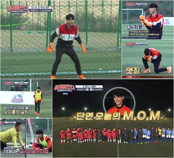 이날 본격적인 경기 전 진행된 탐색전에서 안정적인 볼 처리 능력과 남다른 반사 신경을 선보인 노지훈은 이어진 3 대 3 승부차기 대결에서 본능적으로 공을 막아내는 등 청소년 축구 국가대표 출신다운 실력으로 본 경기에서의 대활약을 예고했다.