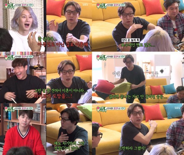 19일 밤 방송된 SBS ‘미운우리새끼’에서는 미혼파와 돌싱파 간의 결혼과 이혼 이야기가 전파를 탔다. 이날 탁재훈은 가상으로 김희철, 김종국, 박수홍의 성격에 맞춘 이혼 시나리오를 짜 웃음을 자아냈다.