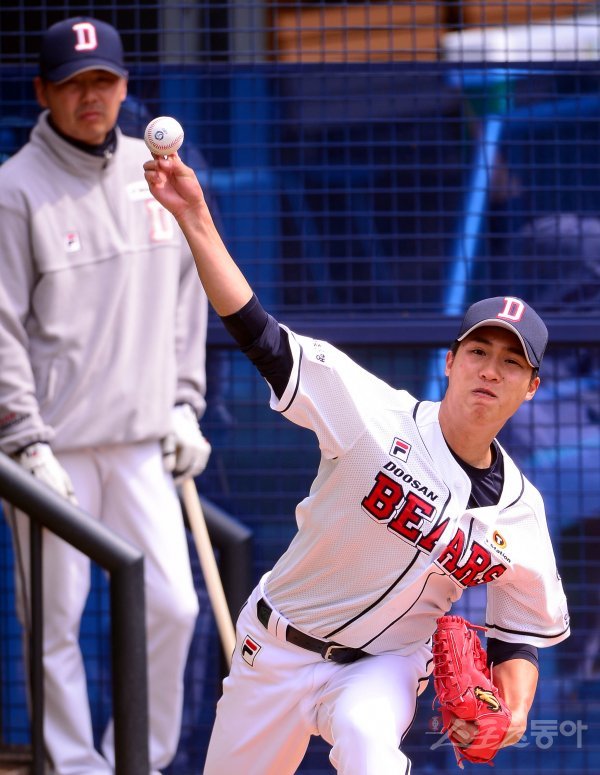 20일 서울 송파구 잠실야구장에서 두산 베어스가 훈련을 가졌다. 두산 박종기가 불펜 피칭을 하고 있다.