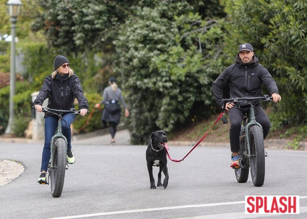 17일(현지시간) 미국 로스앤젤레스(LA)에 한 거리에서 남편과 여유롭게 자전거를 타던 로빈 라이트는 코로나19의 여파에도 마스크를 착용을 안한 채 외출해 사람들의 시선을 받았다.