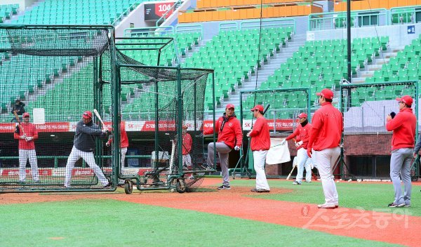 20일 인천 SK행복드림구장에서 SK 와이번스가 훈련을 가졌다. SK 선수들이 타격 훈련을 하고 있다.