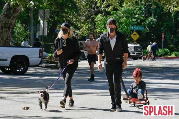 21일(현지시간) 미국 로스앤젤레스(LA)에 한 거리에서 포착된 말린 애커맨은 남편과 아들과 함께 여유롭게 산책하는 일상을 공개했다. 또한 코로나19 여파로 마스크를 착용한 채 외출을 즐겨 사람들의 시선을 끌었다.