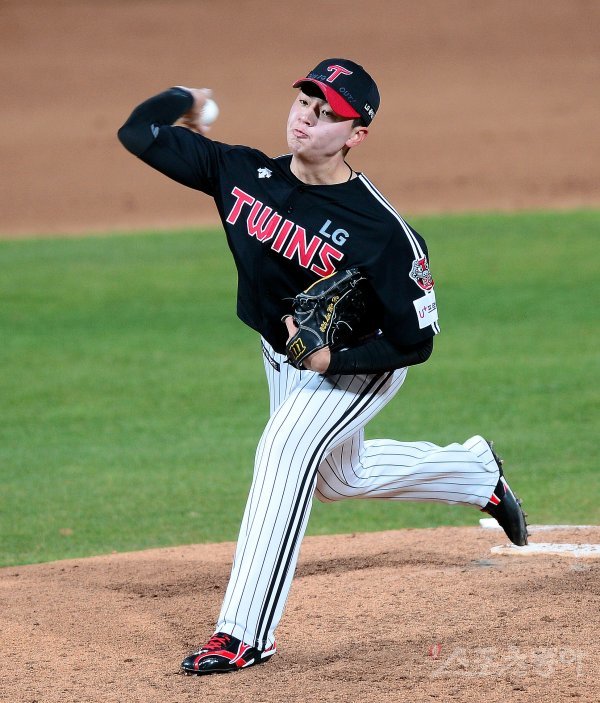 5회말 무사에서 LG 이민호가 구원 등판해 볼을 던지고 있다.