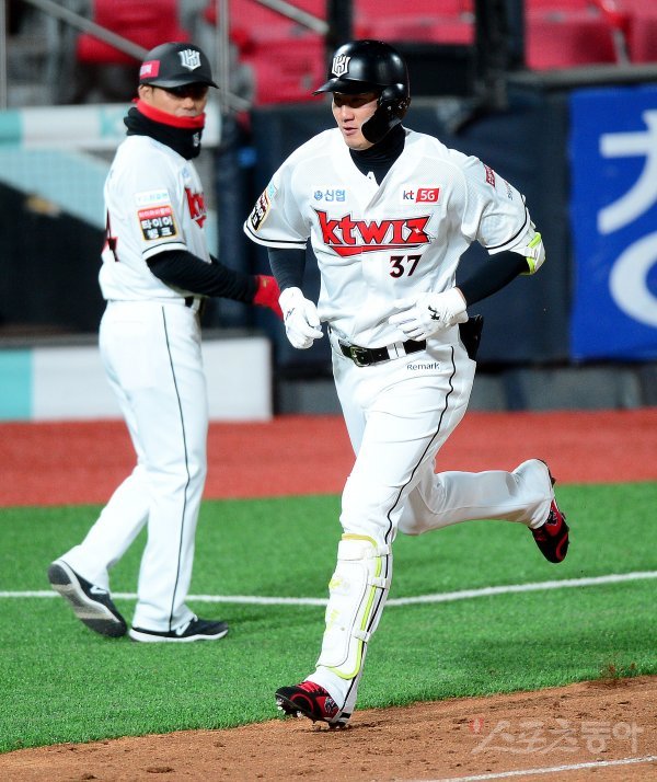 6회말 1사 2, 3루에서 kt 오태곤이 3점 홈런을 쏘아 올린 뒤 그라운드를 돌고 있다.