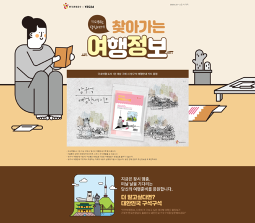 한국관광공사(사장 안영배)는 23일부터 온라인 서점 예스24와 협업이벤트 ‘기다리는 당신에게 찾아가는 여행정보’를 진행한다.