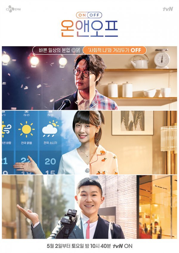 ‘온앤오프’는 바쁜 일상의 본업(ON) 속에서도 ‘사회적 나’와 거리두기 시간(OFF)을 갖는 스타들을 새로운 시선으로 담는 프로그램이다. 바쁜 스케줄 속 ‘사회적 나’에서 벗어나 ‘개인적 나’로 사는 출연진의 모습이 그려질 예정이다.