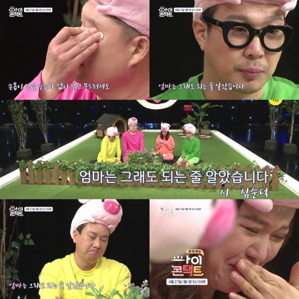 23일 채널A ‘아이콘택트’ 제작진은 27일 방송에 스페셜 MC로 출연하는 백지영이 3MC 강호동 이상민 하하와 함께 스튜디오에 앉아 심순덕 시인의 시 ‘엄마는 그래도 되는 줄 알았습니다’를 소리 내어 읽는 영상을 공개했다.