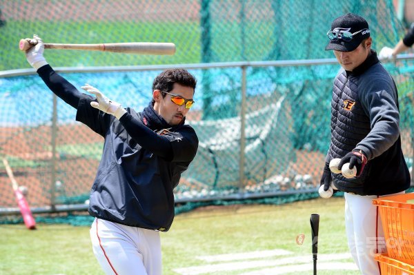 5월 5일 프로야구 개막을 앞두고 23일 대전 한화생명이글스파크에서 한화 이글스와 KIA 타이거즈의 연습경기가 열린다. 경기에 앞서 한화 이용규가 배팅 훈련을 하고 있다.