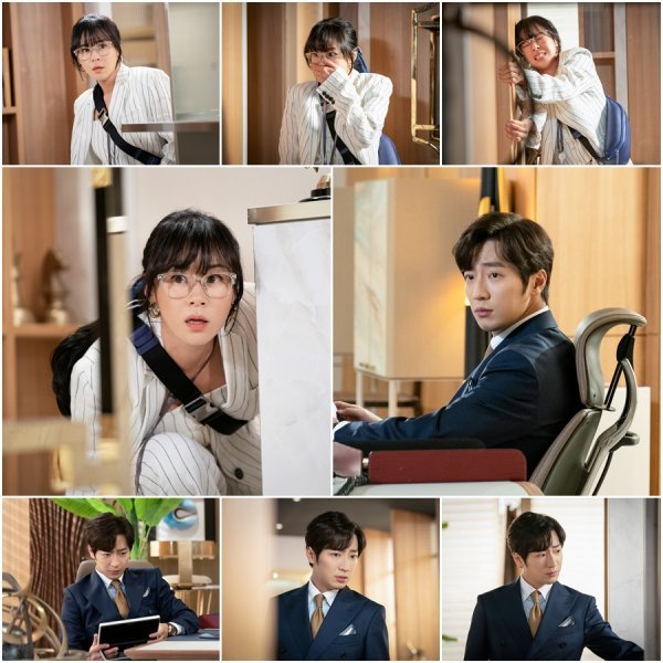 이와 관련 최강희와 이상엽이 사무실 안에서 난데없는 숨바꼭질로 숨 막히는 긴장감을 유발하는 ‘심장 쫄깃 숨바꼭질 투샷’이 포착됐다. 극중 윤석호의 비서로 위장 취업한 백찬미가 작전 수행을 위해 사무실에 잠입한 장면. 하얀색 오버핏 슈트와 투명테 안경으로 감각적인 비서룩을 완성한 백찬미는 다급하게 사무실 이곳저곳을 살피고, 윤석호가 사무실로 들어오자 당황한 나머지 책장 뒤로 몸을 숨긴다. 이어 자리에 앉은 윤석호가 이상한 낌새를 눈치 챈 듯 백찬미가 숨어 있는 책장으로 다가오면서 일촉즉발 상황이 펼쳐지는 것. 과연 백찬미의 작전 타깃이 윤석호가 된 이유는 무엇일지, 백찬미가 출근 첫 날부터 정체가 들통 나는 위기에 봉착한 것일지 귀추를 주목케 하고 있다.