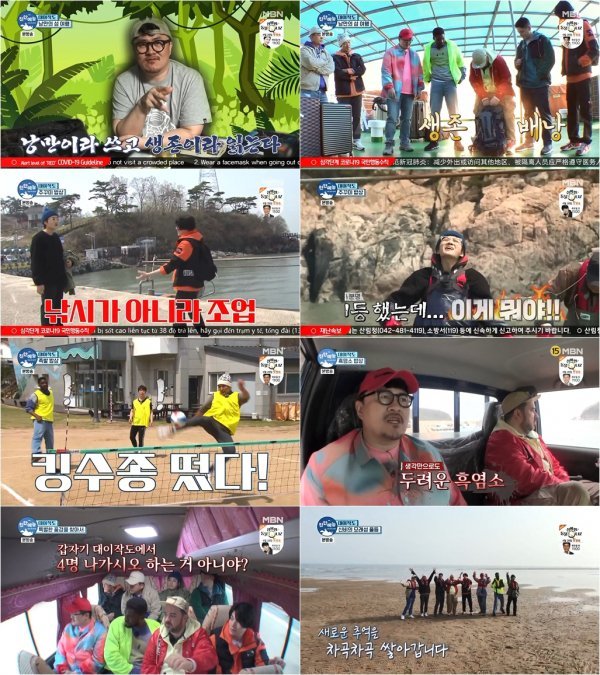 이날 멤버들은 여행에 앞서 ‘낭만이 깃든 섬 여행을 기대하세요’라는 편지를 받고 최소한의 짐을 꾸리게 됐다. 이에 데프콘과 샘 해밍턴은 “제 테마는 생존입니다”라며 호신용 방망이부터 털모자, 멀티툴, 로프, 장갑 등 생존 물품으로 가득 채워진 짐을 소개해 낭만과 생존을 오가는 대이작도 섬 여행을 기대케 했다.