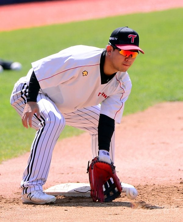 프로야구가 5월 5일 개막을 앞둔 가운데 26일 서울 송파구 잠실야구장에서 LG 트윈스가 훈련을 가졌다. LG 김민성이 3루 수비 훈련을 하고 있다.