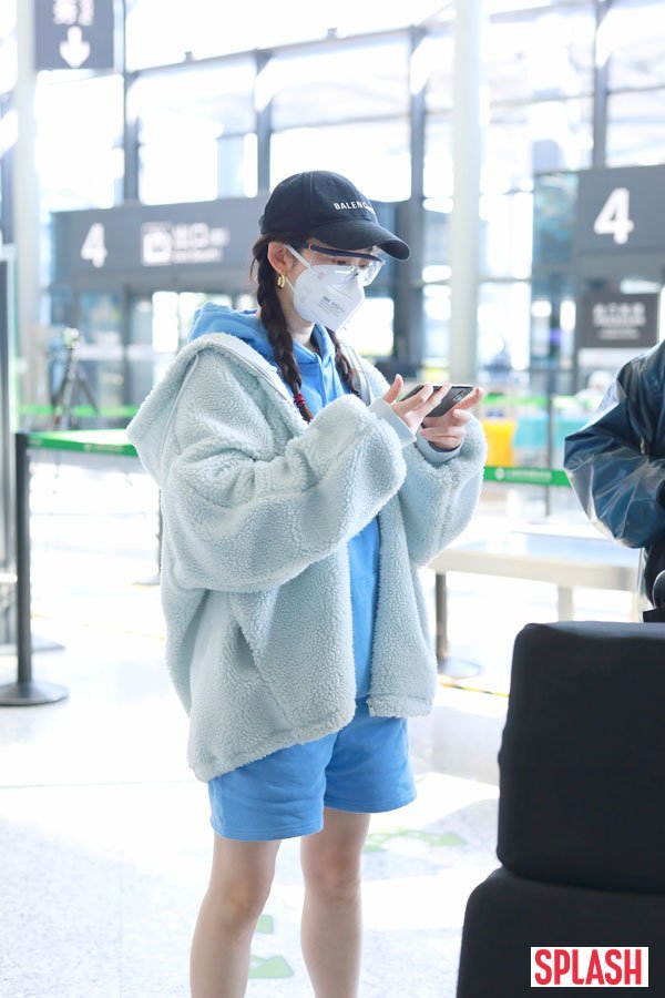 28일(현지시간) 중국 상하이 공항에서 포착된 장몽첩은 트레이닝복 차림으로도