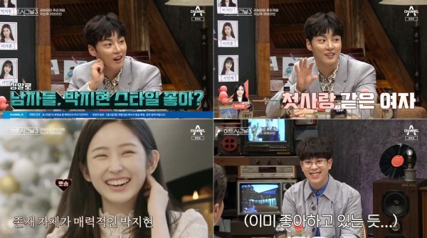 윤시윤은 “주변 ‘여사친’으로부터 ‘정말 박지현 같은 스타일을 남자들이 좋아하느냐’는 질문을 받았다. 첫사랑 같은 이미지를 가지고 있다”고 말했다. 다른 예측단들도 “첫사랑이 정석” “이상적인 이미지”라고 공감했다.