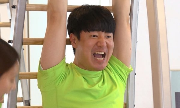 이어 공개된 사진 속에는 이두희가 순수함을 벗어 던지고 ‘포효하는 헐크(?)’로 변신한 모습이 담겨 시선을 강탈한다. 이는 이두희가 구름사다리 모양의 기구에 매달린 채 앞에 서 있는 지숙을 향해 달려가는 듯한 자세로 버티는 모습. 최근 근력 운동을 시작한 이두희는 “가즈아!”를 외치며 얼굴이 터질 듯 열정과 독기를 뿜어내 지숙을 빵 터지게 했다는 전언이다.