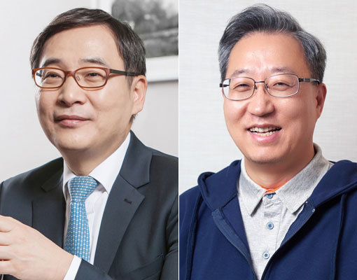 이문환 케이뱅크 행장(왼쪽)과 윤호영 카카오뱅크 대표. 최대주주 난제를 해결한 국내 1·2호 인터넷전문은행 케이뱅크와 카카오뱅크가 본격 2라운드에 나선다. 사진제공 l 케이뱅크·카카오뱅크
