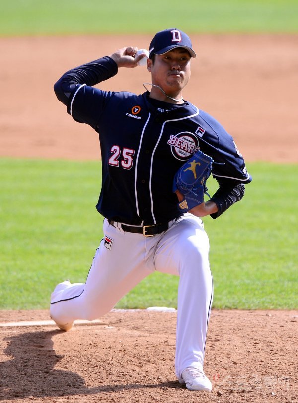 8회말 교체 등판한 두산 이동원이 역투하고 있다.