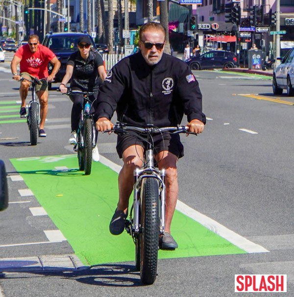 할리우드 배우 아놀드 슈왈제네거가 자전거 타는 모습이 포착됐다.