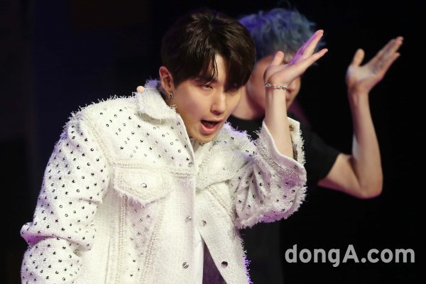 문종업이 7일 오후 서울 강남구 일지아트홀에서 열린 첫 번째 싱글앨범 \'HEADACHE\' 발매 쇼케이스에서 새로운 무대를 선보이고 있다.