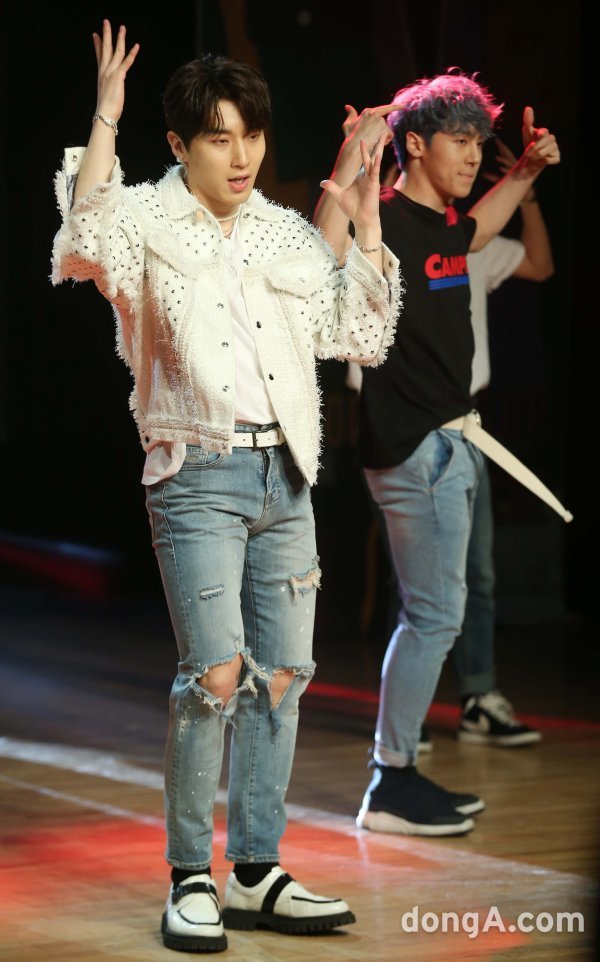 문종업이 7일 오후 서울 강남구 일지아트홀에서 열린 첫 번째 싱글앨범 \'HEADACHE\' 발매 쇼케이스에서 새로운 무대를 선보이고 있다.