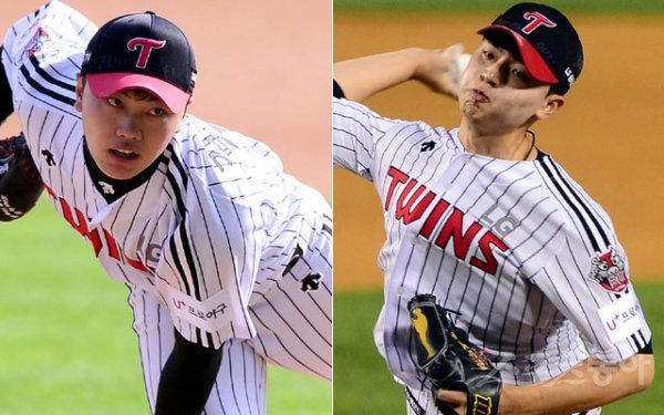 LG 김윤식(왼쪽), 이민호. 스포츠동아DB