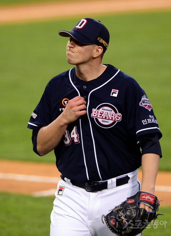 7일 서울 잠실야구장에서 ‘2020 신한은행 SOL KBO리그’ LG 트윈스와 두산 베어스의 경기가 열렸다. 2회말 수비를 마친 두산 플렉센이 동점을 허용한 후 아쉬워하고 있다.