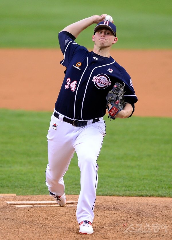 7일 서울 잠실야구장에서 ‘2020 신한은행 SOL KBO리그’ LG 트윈스와 두산 베어스의 경기가 열렸다. 1회말 선발 등판한 두산 플렉센이 역투하고 있다.