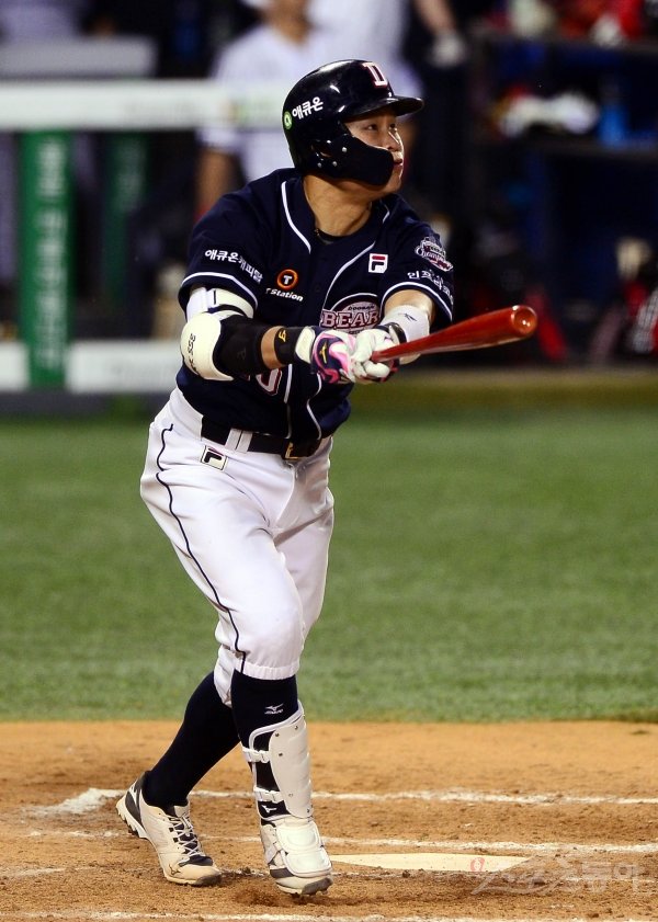 7일 서울 잠실야구장에서 ‘2020 신한은행 SOL KBO리그’ LG 트윈스와 두산 베어스의 경기가 열렸다. 4회초 1사 3루 두산 박세혁이 1타점 희생플라이를 날리고 있다.