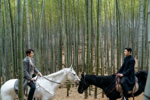 이와 관련 8일(오늘) 방송될 7회에서는 이민호와 우도환이 대숲 한가운데에서 한 치도 물러설 수 없는 기 싸움을 벌이는 모습이 담긴다. 극중 평행세계를 넘어가기 위해 대숲으로 간 이곤이 자신의 앞을 막고 있는 조영(우도환)과 맞닥뜨리는 장면. 이곤은 부드럽게 미소를 띤 채 조영을 바라보다가 이내 결연한 표정으로 위엄 있는 포스를 드러낸다. 조영은 주군을 향한 걱정스러운 눈빛으로 반드시 지키겠다는 다짐을 반복하듯 굳은 경계를 내비치는 것. 과연 서로에 대한 단단한 신뢰를 지키고 있는 두 사람이 이토록 대립하게 된 이유는 무엇인지, 이곤과 함께 조영까지 대숲에 있는 당간지주를 넘게 될 것인지 궁금증이 증폭되고 있다.