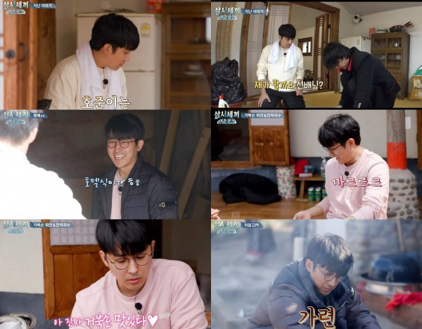 손호준은 보조 역할 뿐 아니라 차승원, 유해진과도 어색함이 없는 ‘손이 차유’ 케미를 자랑하고 있다. 그는 붙임성 있는 막내 답게 자발적으로 아궁이에 불을 때고, 설거지에 나서는 적극성이 눈에 띈다.