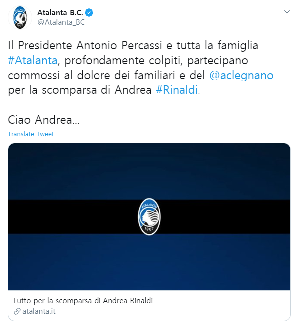 이탈리아 세리에A 아탈란타의 미드필더 안드레아 리날디가 사망했다. 19세의 나이로 요절했다. 갑작스러운 죽음이다.